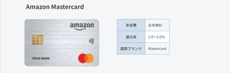 Amazonをよく利用する方には「Amazon Mastercard」がおすすめです。Amazonユーザーとの相性が良く、基本還元率は1%ですが、Amazonでの買い物なら1.5%にアップ。さらに、年会費5,900円のAmazonプライム会員であれば、最大2%の高還元率になります。